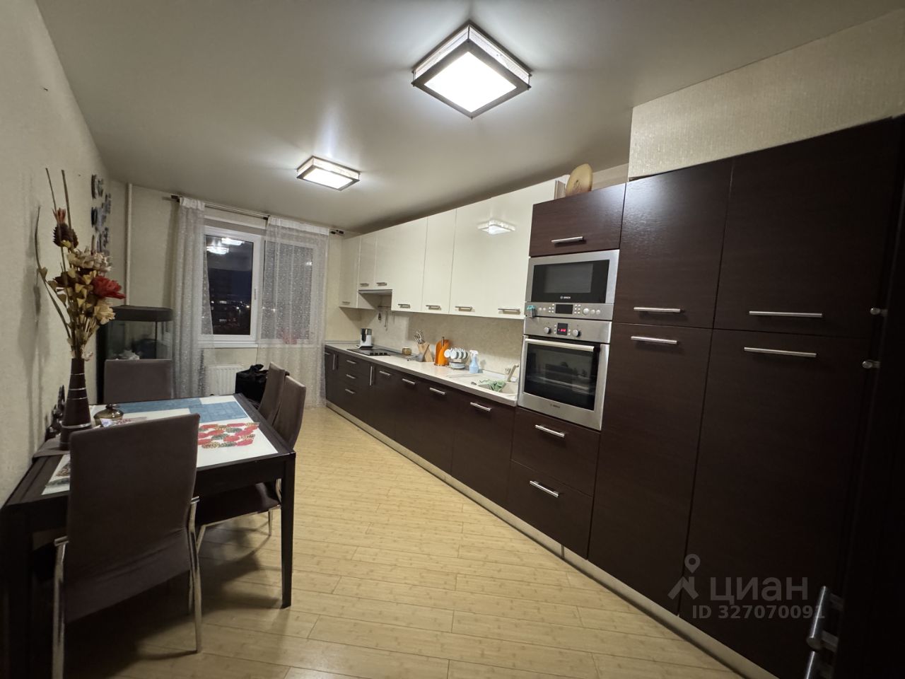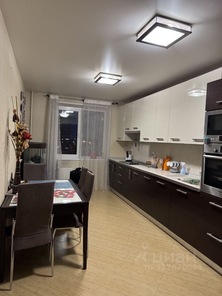 Продается уютная трехкомнатная квартира по адресу: Московская область, город Краснознаменск, улица Победы, дом 24, расположенная на 4 этаже 17-ти этажного панельного жилого дома. Общая площадь квартиры 74 кв.м. Все комнаты изолированные, правильной квадратной формы. В квартире сделан качественный ремонт, пол-ламинат, кроме санузла. Имеется уютная гостиная площадью 18 кв.м и две спальни по 12,3 кв.м. В спальнях на момент выставления объявления не определились с судьбой кроватей (будем или не будем забирать), всё по согласованию. Кровати относительно новые, куплены с матрасами в Дятьково, поэтому если оставим, то за дополнительную плату. В гостиной точно заберем гладильную доску, представленную на фото. Просторная кухня площадью 16 кв.м расположена первой при входе в квартиру. На кухне располагаются встроенный холодильник и морозильная камера Liebherr, встроенная микроволновая печь Bosch и встроенный духовой шкаф Bosch, стеклокерамическая плита. Всё в рабочем состоянии. На кухне остается вся мебель и крупногабаритная техника (кроме чайника, расположенного на фото). Аквариум, расположенный в конце кухни тоже можем оставить по Вашему желанию (пока выставили на продажу через Авито). Санузел раздельный. В ванной стиральная машина Bosch подтекает в силу возраста, возможно ее можно починить (сами не пробовали, поскольку не имели такой необходимости в связи с продажей квартиры). В коридоре вдоль стены располагается большой удобный шкаф с полками и отделениями для вешалок с одеждой, сбоку отделениями для книг. Балкон застеклен. Квартира теплая и светлая, окна выходят на разные стороны дома (во двор дома и на улицу).