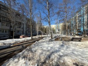 Тихий, благоустроенный двор с современной детской площадкой и спортивной коробкой.