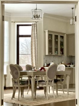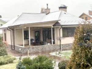1 этаж: Кухня-столовая с эркером, полностью оборудована мебелью и техникой. Гостиная с вторым светом, камином (Австрия) и выходом на террасу в сад. Гостевая комната с кондиционером. Холл, домофон. С/у с душевой. Гардеробная комната. Водяные полы в холле и с/у. Отдельный вход в котельную.