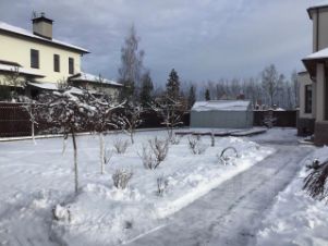 Ландшафтный дизайн выполнен с зонированием на : 1) газон и декоративный лес, преимущественно хвойный; 2) цветник и плодоносящий сад( яблони, груши, слива, черешни, вишни, ягодные кустарники (ежевика, смородина и др). Имеется теплица(стеклянная) и открытые высокие грядки (под клубнику и овощные культуры).